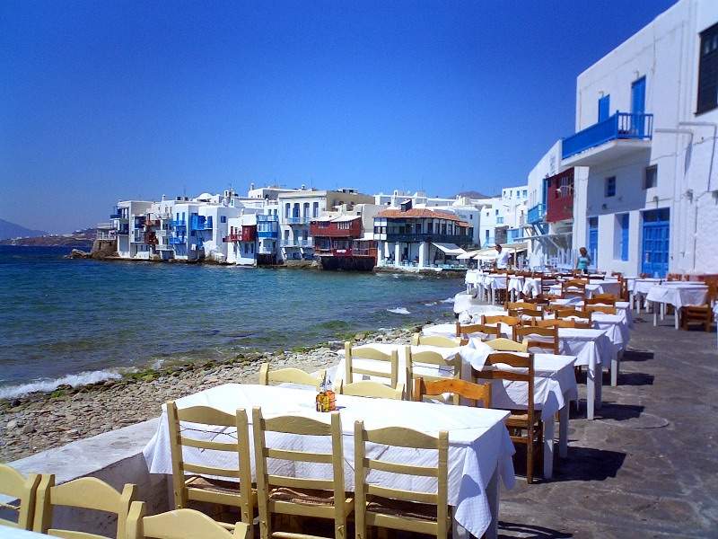 Один из самых живописных районов Хоры — Маленькая Венеция. Её старинные дома расположены прямо у кромки моря. А побережье заполнено барами и тавернами, где туристы встречают закаты. Маленькая Венеция вдохновляет художников. На Миконосе продают многочисленные сувениры с изображением этой части Хоры.